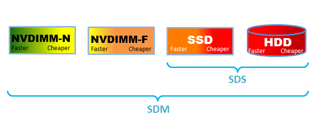A year ago the Fusion-IO folks in SanDisk made the first attempt to define software-defined memory (SDM, here). but a lot has changed since then. 2015 was a crucial year for the standardization of non-volatile DIMM (NVDIMM) components. There have also been several announcements of new storage-class memory devices like Intel & Micron 3D-Xpoint, HP & SanDisk RRAM and Sony & Viking ReRAM.